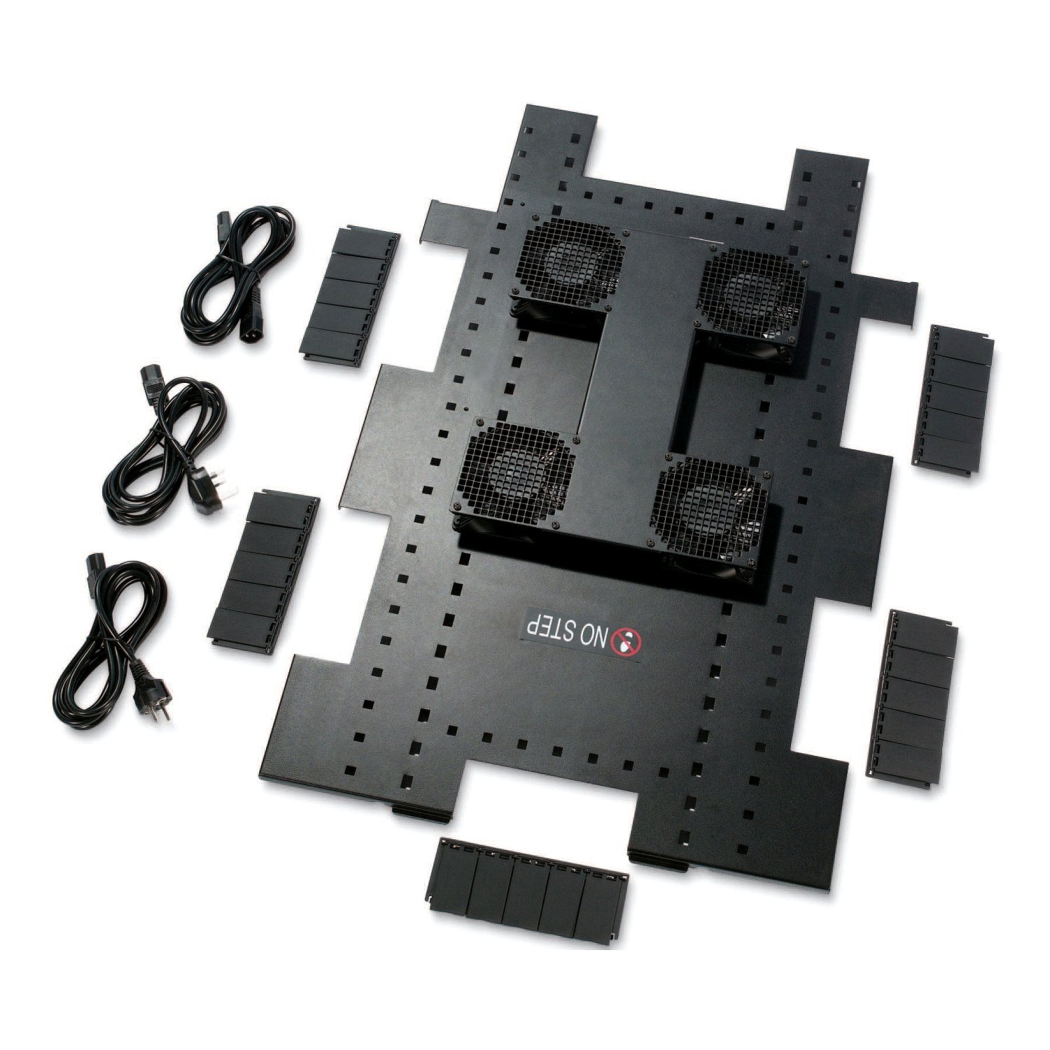 The Rack Fan Tray is a low cost solution that aids in heat removal from a Netshelter Enclosure. The system easily installs into the top of the enclosure and expels heat from the roof of the rack. Wall-mounted enclosures have the additional option of installing the rack fan tray systems in the base of the rack as well. The fan trays are designed to promote bottom to top airflow within the enclosure.